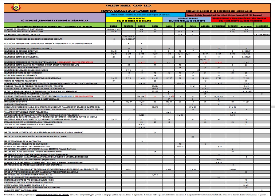 CRONOGRAMA INSTITUCIONAL 2026